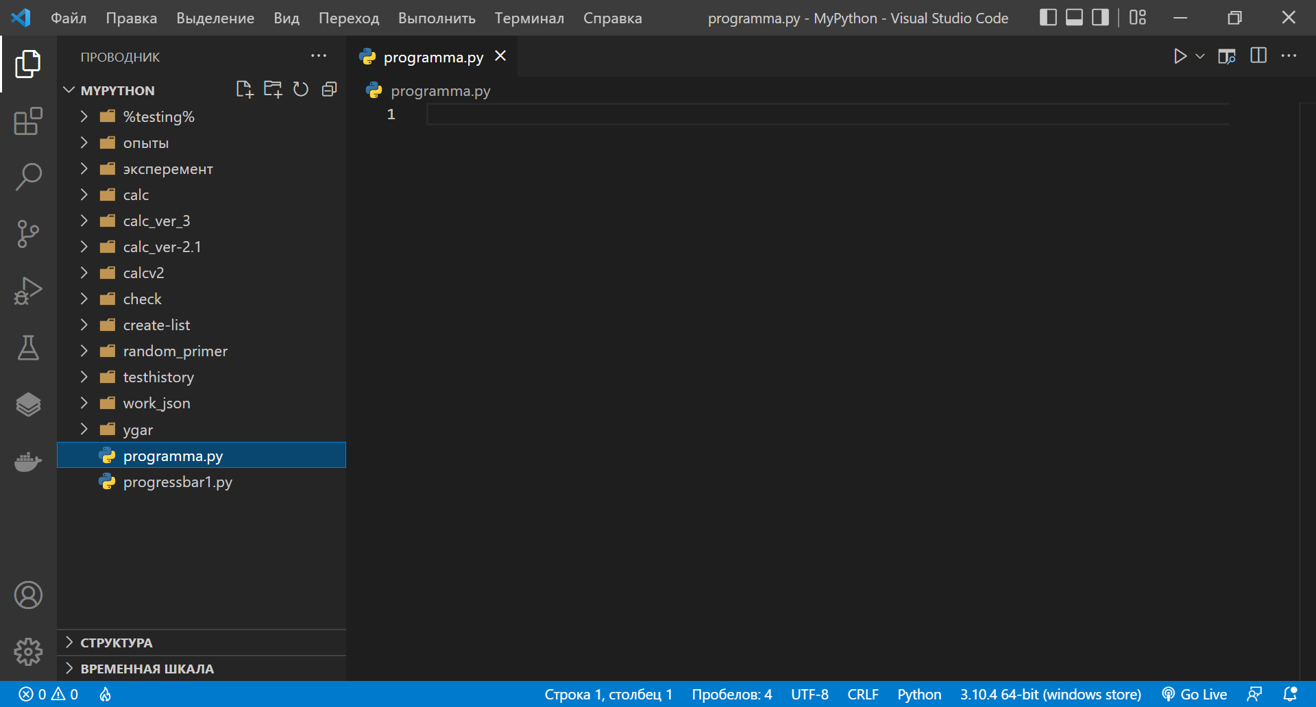 Первым делом открываем IDE для python, это может быть и Visual Studio и Visual Studio Code и PyCharm и многие другие среды разработки. Я-же