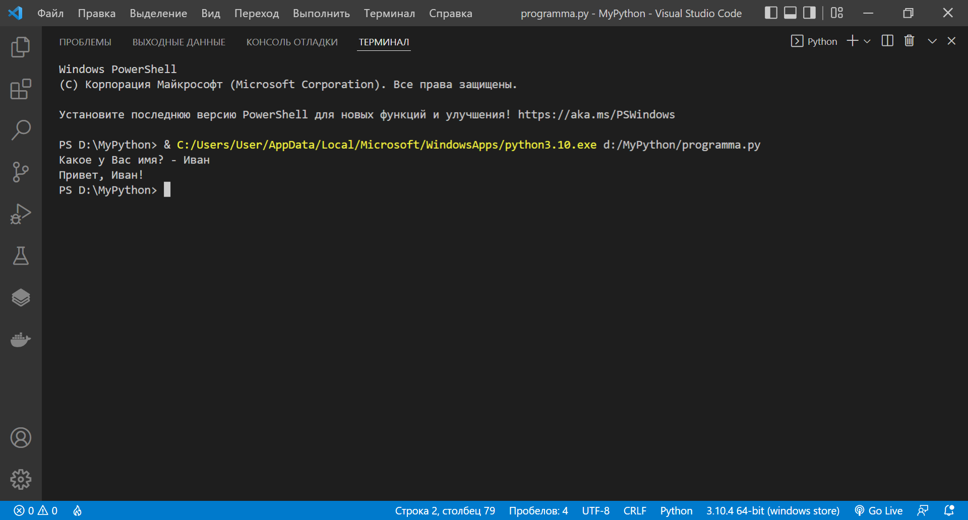Наша цель - создать программу, который запрашивает имя пользователя и выводит приветствие с введёным именем.