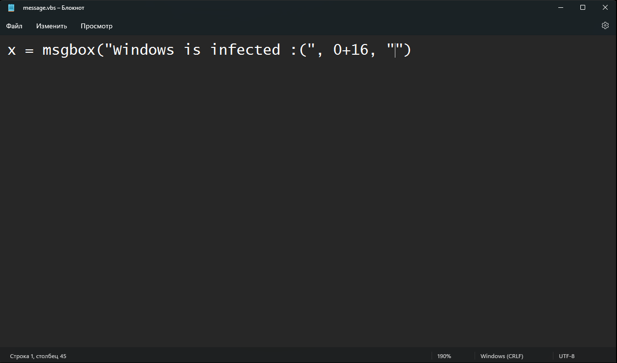 5. Сохраняем файл и переименуем его с virus.txt на virus.bat